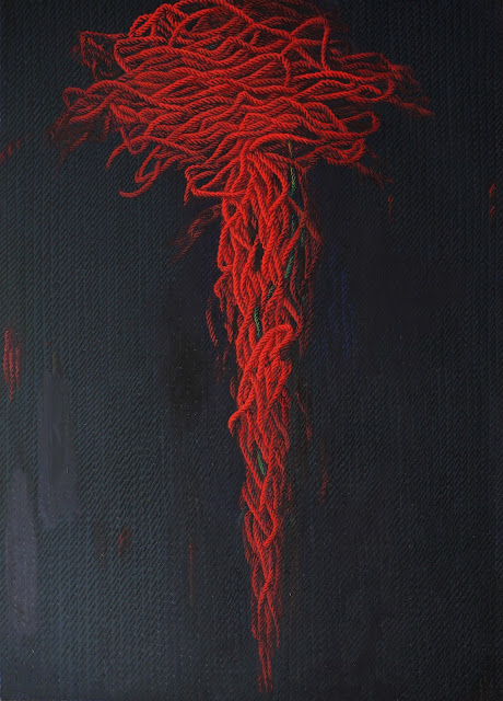 Hala Ahmet Yeşil’in tuvalinde ip ve halat görenler için de şunları söyleyebiliriz. İp ve halat sözlük anlamıyla bağlayıcılığı ifade eden, sarmal nesnelerdir. Ahmet Yeşil’in tuvalinde ise, ip ve halatlar, maddi dünyadaki bağlayıcı rolünü tamamen kaybeder ve artık onlar, resim düzlemine yepyeni açılımlar sunan, sanatçının plastik dilinin vardığı imge, anlatmaktan anlamaya kullandığı bir araç haline dönüşür. İzleyiciyi ipler, halatlar çekmez sanatçının iç dünyasına. İzleyiciler, sanatçının kendine has mavi, yeşil, mor ya da kırmızı renklerle tuval yüzeyinde yaratığı şiirsel kompozisyonların içine dalıverir. Bazen denizin altında, bazen dalgaların üzerinde, bazen ıssız bir ormanda, bazen de yeşile gebe mavinin içinde buluverirler kendilerini. Sanatçının istediği tam da budur. İzleyiciyi ve resimsel imge derin bir diyalog içindedir.