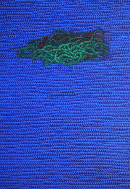 Ahmet Yeşil’in tuvalinde, sözlük anlamının ötesinde plastik bir imge olarak yerleşen ip ve halat, maddi dünyadaki bağlayıcı rolünü tamamen kaybeder ve resim düzlemine yepyeni açılımlar sunar. İzleyiciler, ritmik bir akış yüklenen bu imgelere bırakır kendini ve sanatçının kendine has mavi, yeşil, mor ya da kırmızı renklerle tuval yüzeyinde yaratığı şiirsel kompozisyonların içine dalıverir. Denizin altında, dalgaların üzerinde, ıssız bir ormanda, bazen de yeşile gebe mavinin içinde buluverir kendini. Sanatçının istediği tam da budur: İzleyiciyi ve resimsel imge derin bir diyalog içindedir.