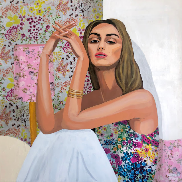 Wencke Uhl is a contemporary figurative painters living and working in Germany. She draws inspiration from human beauty and the female form. As a teenager Uhl wanted to become a fashion designer and her fashion-forward aesthetic continues to shine alongside the deliberate and differentiated elements that define the vivacious and independent nature of her subjects. Uhl still likes to “dress” women in shapes and patterns, but her focus shifted from the purely fashion-oriented to including elements of storytelling.