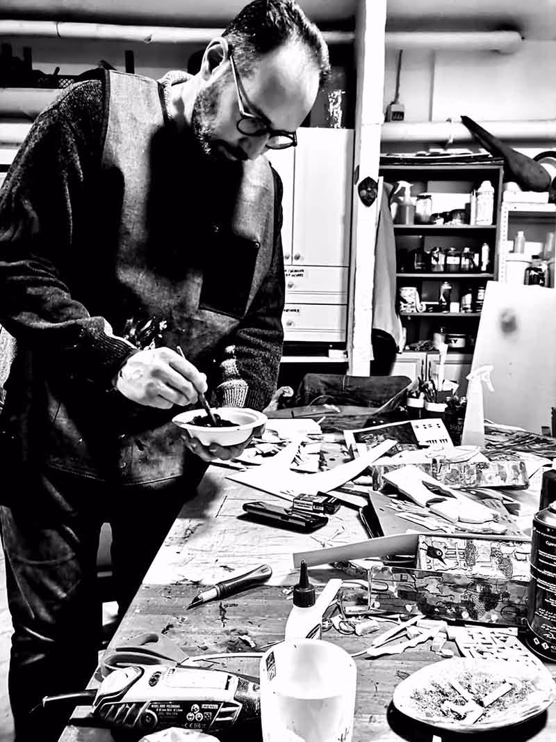 Ekber Sürsal’ın pratiği; uygarlıkların, kültürlerin ve inançların üst üste biriktiği coğrafyalardan beslenen zengin bir görsel dile dayanıyor. “Zamansız” ve “Kent Katmanları” temaları etrafında şekillenen seçki, kenti yalnızca geçmişin izleriyle değil, her bakışta yeniden kurulan bir hafıza alanı olarak ele alıyor. Taş, metal, kâğıt, reçine, bakır ve ahşap gibi farklı malzemeleri bir araya getiren sanatçı; doğal ile yapay, geçmiş ile şimdi ve gerçek ile düş arasında şiirsel bir bağ kuruyor.