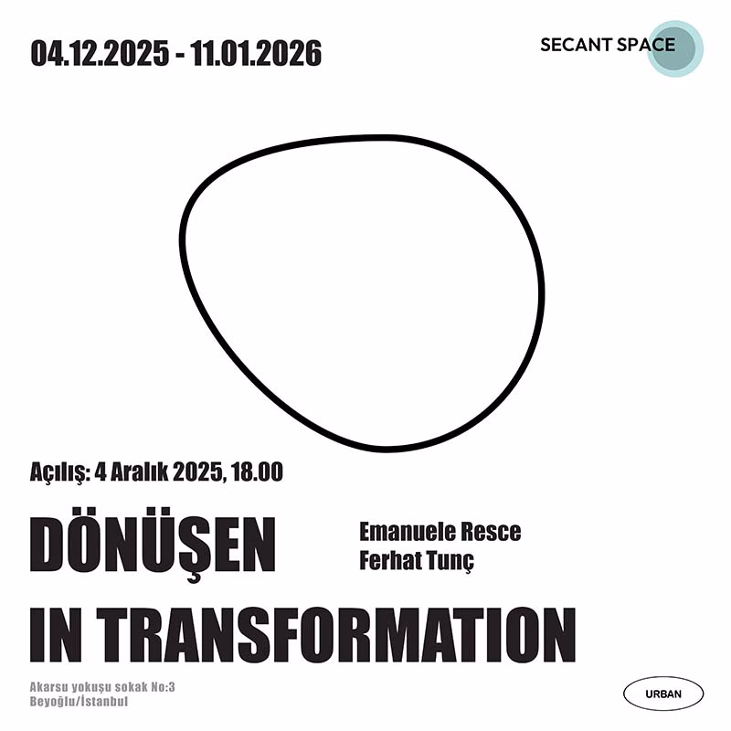Secant Space, Dönüşen başlıklı sergiyi 4 Aralık 2025 – 11 Ocak 2026 tarihleri arasında yer veriyor. Emanuele Resce ve Ferhat Tunç’un eserlerini bir araya getiren sergi, zamanın nesnelere, mekânlara ve bilgiyi yapılandıran sistemlere nasıl yerleştiğini, onları nasıl dönüştürdüğünü ve bu dönüşüm sonucunda nelerin ortaya çıktığını araştırır. Serginin açılışı 4 Aralık 2025 günü saat 18.00’de gerçekleşiyor.