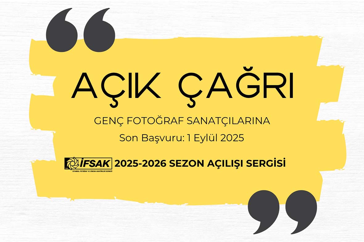 İstanbul Fotoğraf ve Sinema Amatörleri Derneği (İFSAK), 2025–2026 Sezon Açılış Sergisi için 18–28 yaş arası genç fotoğraf sanatçılarının eserlerini paylaşmaya davet ediyor. Doğa, portre, sokak hikâyeleri, belgesel projeler, stüdyo çekimleri ile kavramsal ve deneysel çalışmalar dâhil olmak üzere her türden üretimle başvuruda bulunabilecek katılımcılar, özgün bakış açılarıyla kendilerini özgürce ifade etme imkânı bulacaklar. Genç sanatçılar, bireysel ya da kolektif projelerle, karma medya ya da fotoğrafla ilgili alternatif baskı tekniklerini içeren çalışmalarla da sergiye katılabilirler.