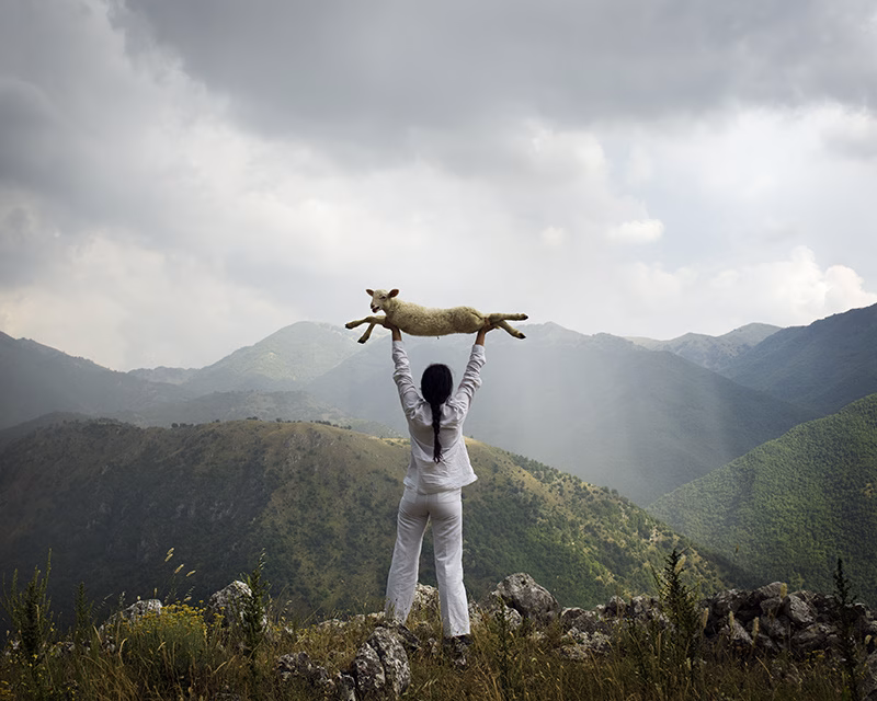 2010 yılında MoMA’da gerçekleştirdiği ve üç ay boyunca 1600’den fazla ziyaretçiyle sessizce göz teması kurduğu çığır açıcı performansı “Sanatçı Mevcut”un ardından Abramović, topraklanmak için doğaya yöneldi. “Basitliğe Dönüş”teki “Keçiyi Tutmak”, “Kuzuyu Tutmak”, “Kara Koyun” ve “Kara Kuzu ile Portre”, temel sadeliğe dönüşü ve doğal dünyayla yeniden bağlantı kurma arzusunu yansıtıyor.