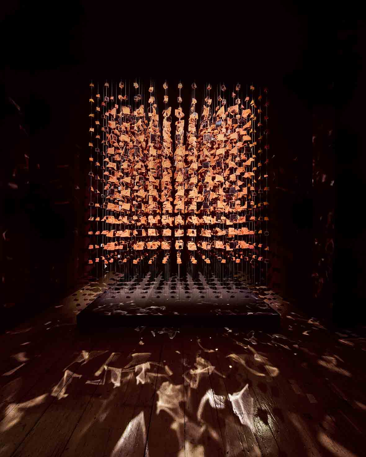 Levh-i Mahfuz Sahnesi’nin kurulduğu her yerde kolektif hafızaya ait parçalar kendini sonsuzlukta tekrarlıyor ve izlenenle izleyicinin yerini değiştirerek çok boyutlu bir zeminde “çerçeve” kavramı ile oynuyor. Matematikte kullanılan “Tesseract Küpü”ne yaptığı oyunlu gönderme ile asılı bir küp formunda yerleşen hafıza parçaları, tekrar eden akustik ve ışık kurgusu ile desteklenerek “zamansızlık ve mekânsızlık” eşiğiyle ilgili bir tecrübe başlatıyor.