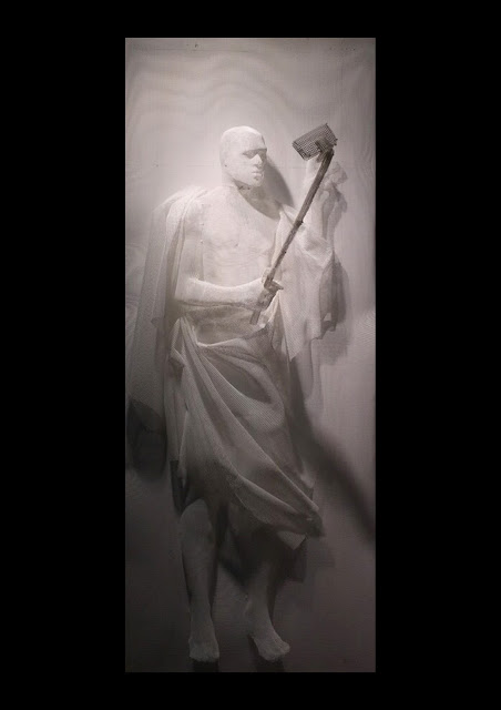 I have privilidge to met art works by Recycle Group at Suzanne Tarasieve Gallery (Paris) Stand. Recycle Group who have awarded Kandinsky Prize, (2010 Best Young Artist), Innovation Prize exhibition (2009, NCCA Moscow, Russia) and Kandinsky Prize (2009, London) were in Istanbul for ArtInternational Fair and exhibited their works titled as “Selfies”, “Selfie 1” and “Selfie 2”. These works were among most visited art works in ArtInternational Fair. “Selfies” and “Selfie Sticks” are part of our lives and Recycle Group interpreted this social media madness throught using classical sculptures handling selfie sticks. Everybody is Greek or Roman Gods/Goddess or Kings/Queens! As the name of the Group suggests Recycle Group use recycled material to create their art works and they have used thermoshaped plastic mesch in Selfie Group.