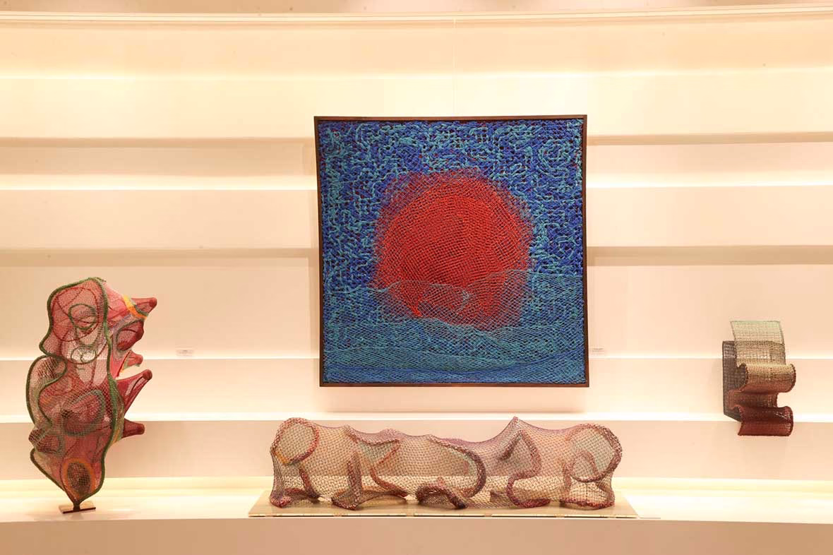 Semra Özümerzifon, sergi açılışında yaptığı konuşmada “15 yıl önce boğazda yürüyüş yaparken tesadüfen önüme çıkan balık ağları zengin renk ve dokularıyla hemen dikkatimi çekti. Suların altında uzun yıllar kullanılmış, yaşanmışlık hissi yansıtan bu malzemeyi çok sevdim, balıkçılarından toplamaya başladım ve o zamana kadar kullandığım yağlıboya çalışmalara ara vererek bu malzemeyle yeni bir sanatsal serüvene giriştim. Uzun bir çalışma sürecinden sonra balık ağları yeni kimliklerle çeşitli şekillere büründüler. Aynı zamanda çevre sorunları, deniz canlılarının türlerinin tükenmesi, balıkçılığın zahmeti, geri dönüşüm gibi konularda kendi hikayelerini de anlatıyorlar.” dedi.