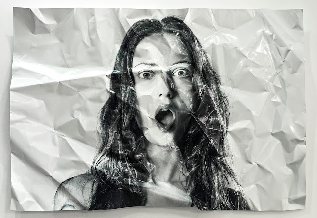 Paketli ürünlerin etiketleri üzerinde yer alan ve ürünün hacim ya da ağırlığının değişkenlik gösterebileceği miktarı işaret eden “e” sembolü, bizi hata payı için uyarır. Yaklaşık 15 yıldır çalışmalarının odak noktasında her zaman “kadın” olan Serkan Adın’ın son sergisinde de bu kez kadın figürünün nasıl ambalajlanarak, nesnelleştirildiğine dair bir eleştiri gözlemliyoruz. Nesneyi cazip hale getirmenin en kestirme yöntemi, onu çekici kılacak bir ambalajla sunma fikri ve sanatçı kadın figürüne olan bakışı irdelemeye buradan başlıyor. Kimi zaman saklamak ya da muhafaza etmek, kimi zaman cazip hale getirmek adına ambalaja sarılanı, eksiğiyle ya da fazlasıyla kabul ettiğimizi gösteren “e” sembolünden faydalanan Serkan Adın, serginin ismini de bu +/- göndermesinden çıkarıyor.