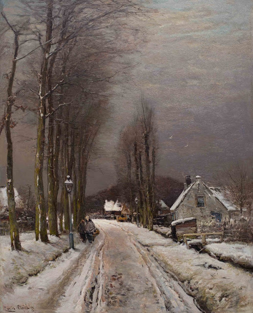 Artist / Title: L.F.H. Apol (1850-The Hague-1936), A lane with farms in winter, Oil on canvas, 79.5 x 63.5 cm, Signed lower left ‘Louis Apol f’