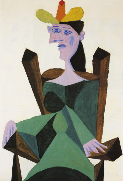 | Pablo Picasso’s “Femme Assise sur une Chaise,” 1938, is estimated to sell for $25 million to $35 million. Credit 2015 Estate of Pablo Picasso/Artists Rights Society (ARS), New York, via Sotheby’s. |
