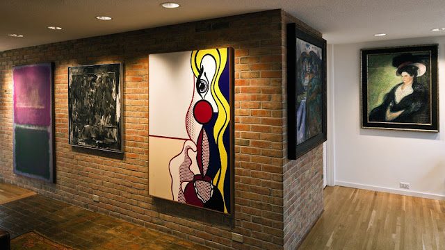 | In the entryway, visitors are greeted by a trio of postwar American paintings: Mark Rothko’s Untitled (Lavender and Green), Jasper Johns’ Disappearance I and Roy Lichtenstein’s Female Figure, Photography © Steven Brooke Studios. |