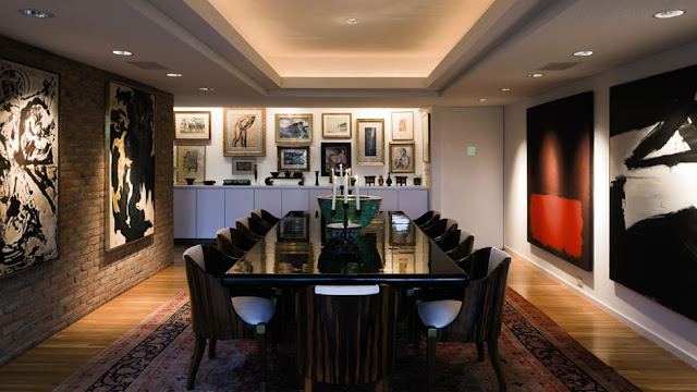 | The dining room became a showcase for Abstract Expressionist masterpieces, Photography © Steven Brooke Studios. |