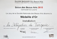 Paris’te her yıl düzenlenen Société Nationale des Beaux-Arts (SNBA) kurumunun organize ettiği ve 17-20 Aralık tarihleri arasında gerçekleşen “SALON 2015” sergisine “SYNERGIE-Sinerji” başlığı ile 24 sanatçıyla katılan SNBA Türkiye Delegasyonu sanatçıları, özgün sergileme ve aldıkları ödüllerle büyük başarı elde etti. “SALON 2015” etkinliğinde Türkiye Delegasyonuna takdim edilen ödüller;