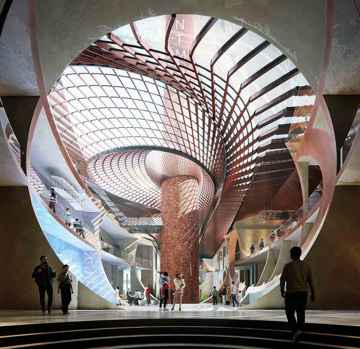 Fabrikanın batı cephesindeki yeni dairesel açıklık, ziyaretçileri 13.400 metrekarelik müzenin kalbindeki tarihi bacanın demirlediği üç katlı merkezi atriyuma götüren halka açık giriş olacak. Binanın müze olarak devam eden yaşamında sirkülasyonu ve işlevselliği artırmak için, eski fabrikanın iç mekanını bölen duvarların içine elipsoidal kesitli açıklıklar oyulacak. Bu açıklıklar, batı girişinden, atriyumdan ve müzenin doğu ucundaki Tesla anıtında sonlanan genişletilmiş bir perspektif yaratan bir dizi üç boyutlu küresel boşluğu tanımlar.