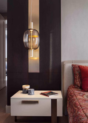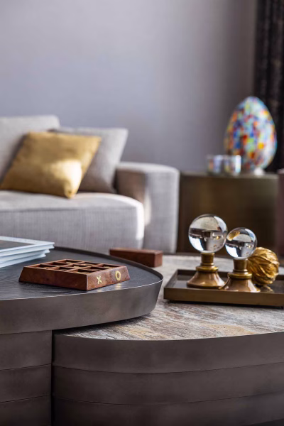 Yaşam alanı zamansız ve zarif bir “sessiz lüks” anlayışını yansıtıyor. Minimalist ve yalın hatlar, odak noktalarına yerleştirilen sanat eserleri ve özel tasarım aydınlatmalar ile zenginleştirilmiş. Yemek masası ve sandalyeler Enne, yemek masası üzerindeki aydınlatma Masiero – Lamphouse, aksesuarlar Paşabahçe / Four and More.