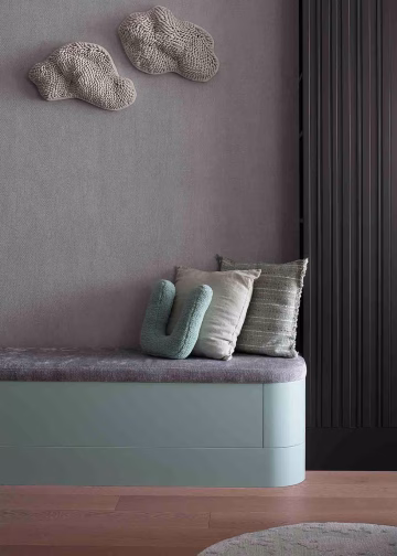 Sevim Kaya’nın (PG Art Gallery) eseri, yumuşak formu ve nötr tonlarıyla odanın sakin ve sıcak atmosferini destekleyerek mekâna derinlik katıyor. Renk ve malzeme uyumu sayesinde hem mobilyalarla hem de genel tasarım diliyle dengeli bir bütünlük oluşturuyor. Tekstil ürünleri Zara Home, çalışma sandalyesi Nurus.